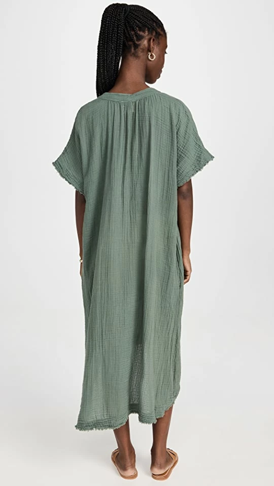 Crinkled cotton gauze lends an airy feel to this simple 9seed cover-up caftan. A raw hem gives the piece a more casual feel (which is exactly what you want on vacation, right?)