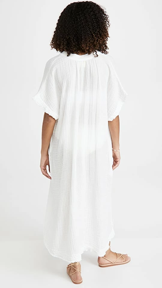 Crinkled cotton gauze lends an airy feel to this simple 9seed cover-up caftan. A raw, high-low hem gives the piece a more casual feel which makes it the perfect fit for days spent relaxing on the beach.