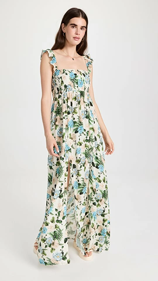 - Smocked elastic bodice and ruffle straps