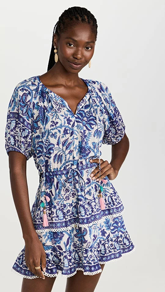 - Ruffle trim and tiered skirt