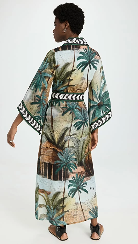 - Optional, self-tie belt at waist