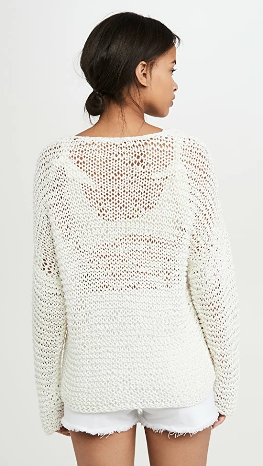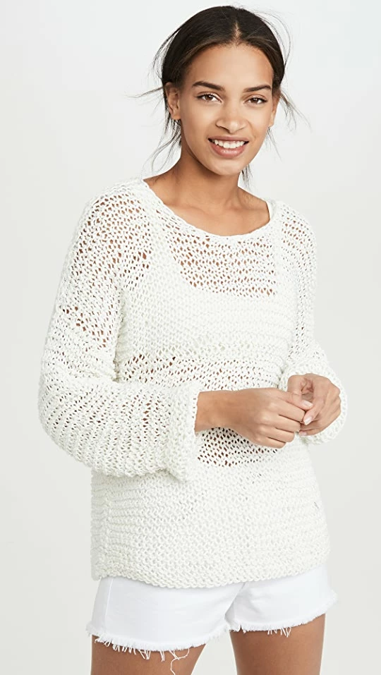 Crafted from bright-white, loose-knit yarn, MIKOH’s Mehetia top is an essential layering piece that goes from beach to street with ease—just swap out your bikini bottoms for cutoffs.