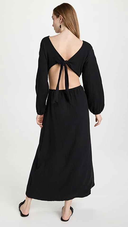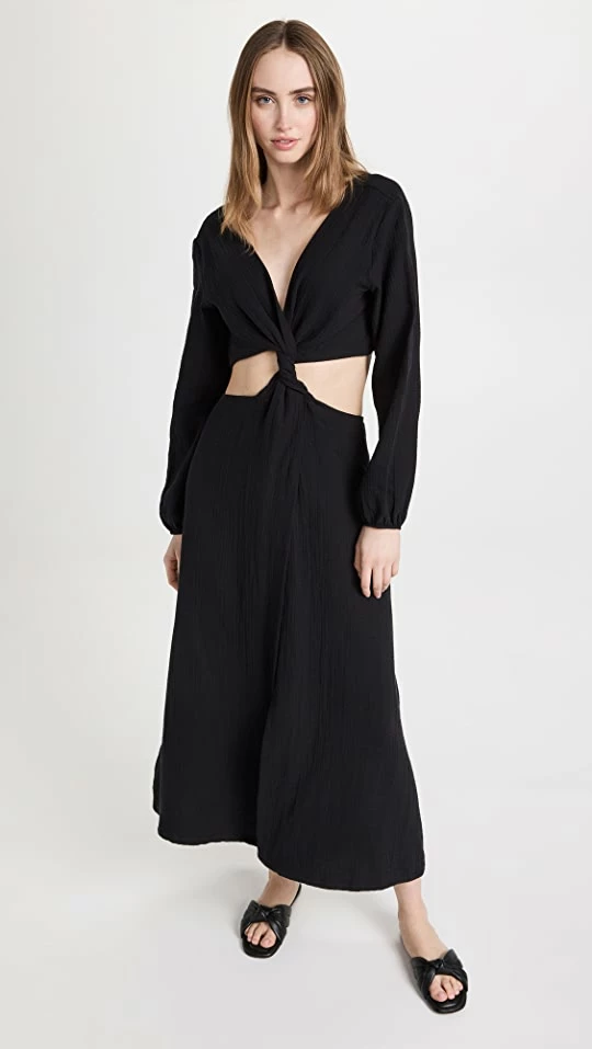 A polished cover-up option, this Peixoto dress is crafted from jet-black, super-soft crinkled gauze, and is designed with a wraparound cutout at the waist. Go with tonal flat sandals to complete your outfit.