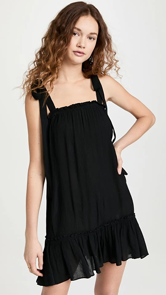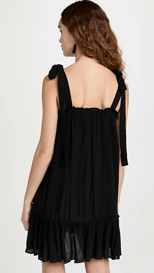 Effortless and chic, this Playa Lucila cover-up mini dress is crafted from black gauze and features a flowing fit and charming shoulder ties for a piece that can easily take you from seaside to street.