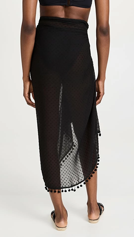 Elevated your poolside look with this semi-sheer Playa Lucila sarong, which is detailed with delicate swiss-dot embroidery and tonal pom-pom trim.