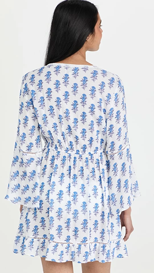 - Plunging V neckline and 3/4 length sleeves with flared cuffs