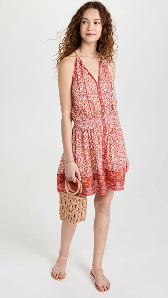 Spend your next sunny day in this charming Poupette St Barth cover-up mini dress, a lightweight piece that’s distinguished by understated contrast patterning. To round out your outfit, add a straw sun hat and strappy sandals.
