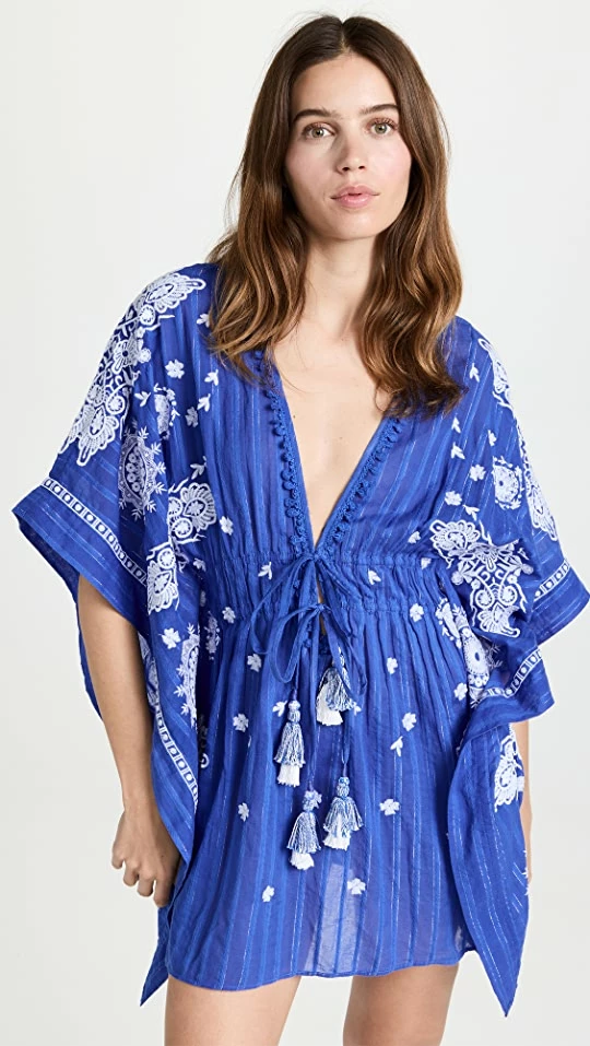 - Poncho silhouette with 3/4 sleeves and closed side seams