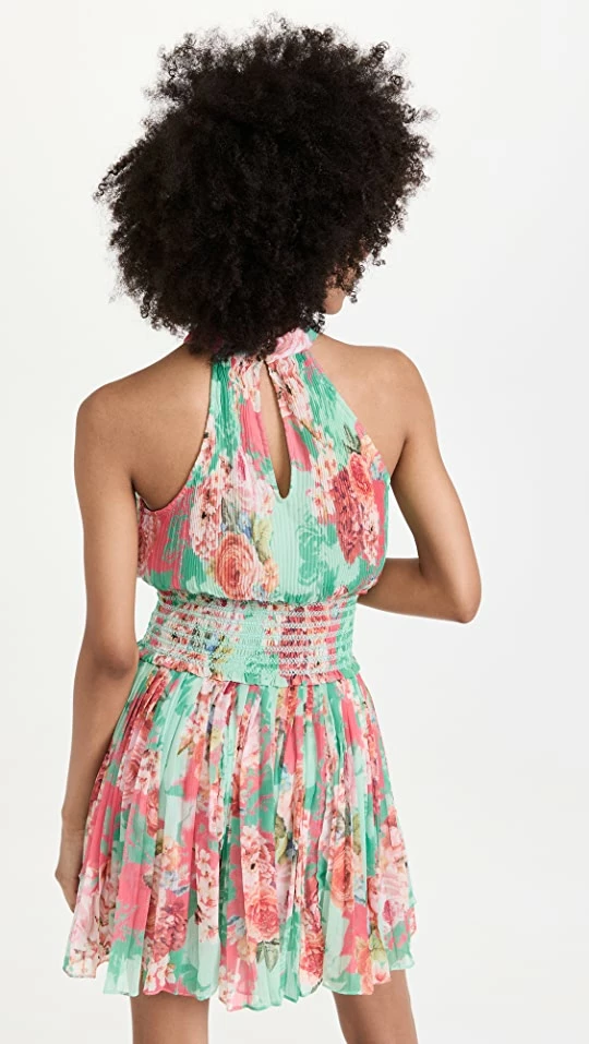 - High, halter with button keyhole at back