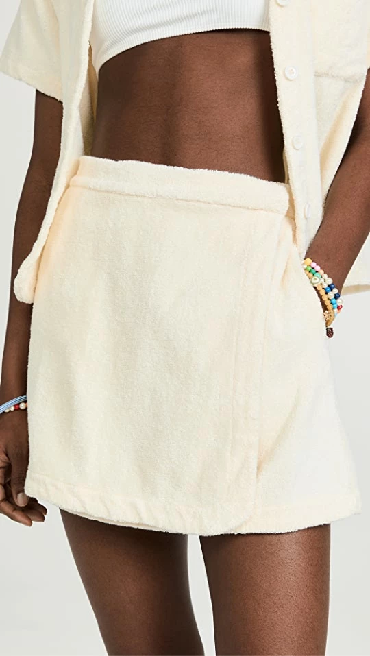 The label’s signature soft fabric composes this charming TERRY miniskirt, which features a subtle crossover design and convenient side pockets.