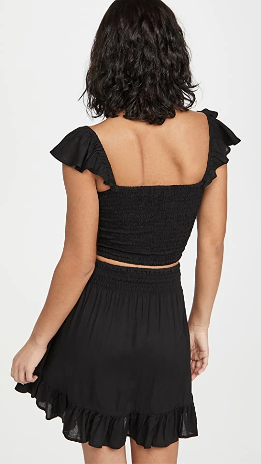 A chic and charming choice for beach day, this monochrome TIARE HAWAII cover-up set includes a drifty skirt and a smocked crop top with a sweetheart neckline.