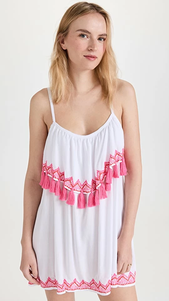 This draped TIARE HAWAII cover-up dress boasts brightly colored tassels for a playful dose of easy, boho style to keep your summer adventures going strong.