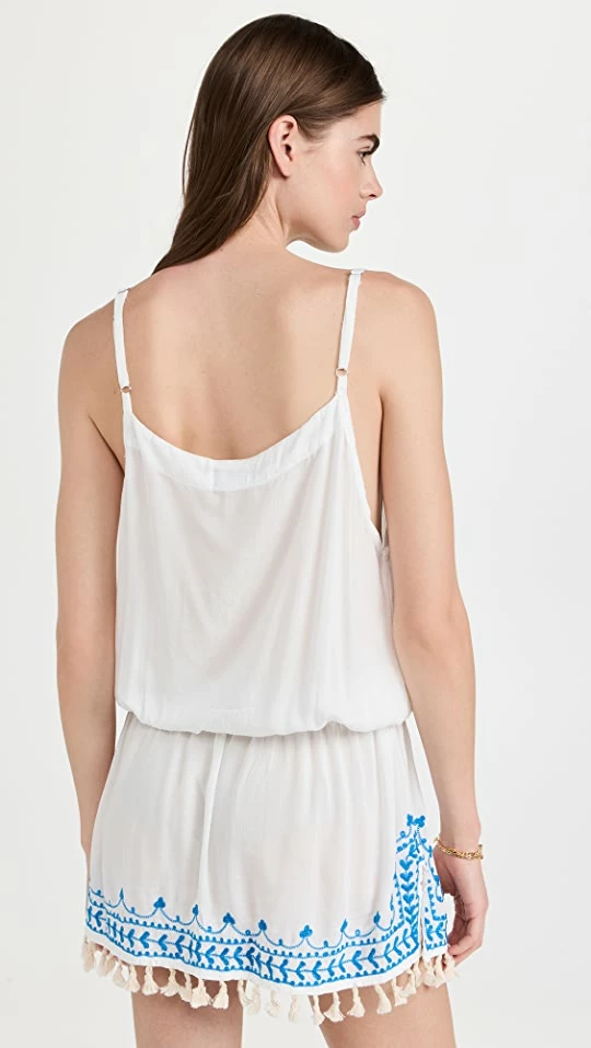 Contrast lace trim adds a charming touch to this TIARE HAWAII cover-up dress. Tassels accent the hem.