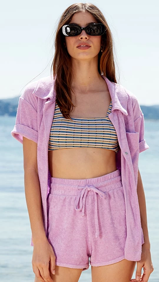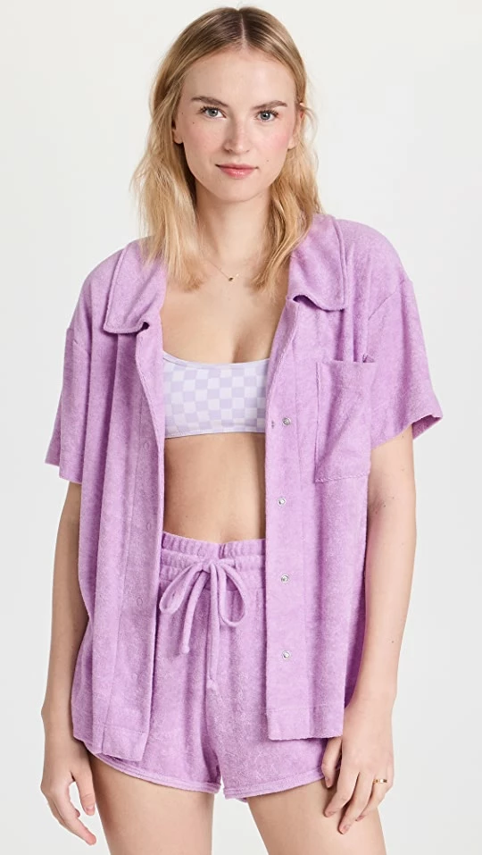Ideal for lazy mornings, balmy afternoons, and beach getaways alike, this Year of Ours button-down shirt is crafted from super-soft terry in a pale purple shade.